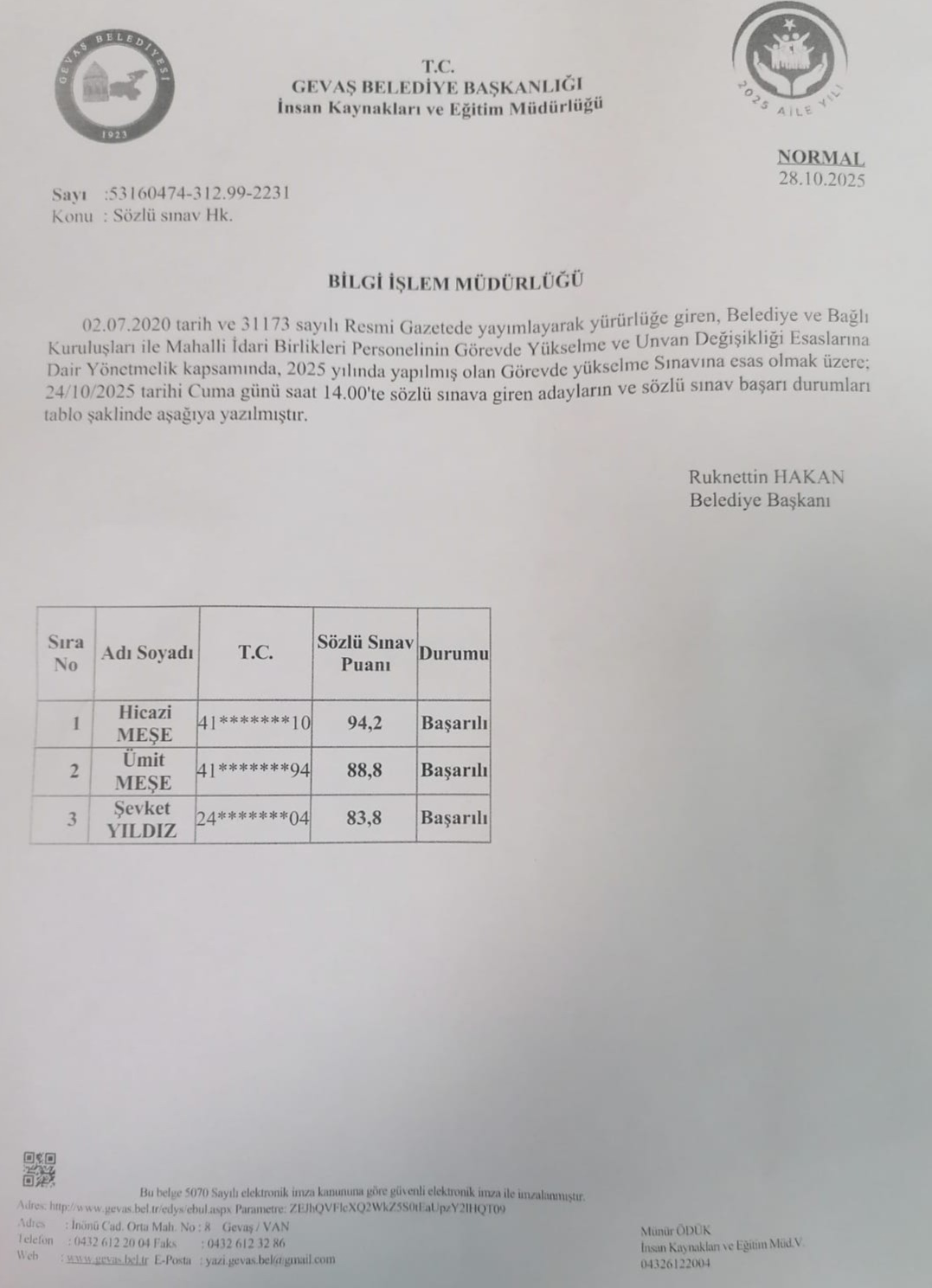 GÖREVDE YÜKSELME VE ÜNVAN DEĞİŞİKLİĞİ SÖZLÜ SINAV SONUÇLARI